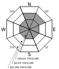 Heightened avalanche conditions on specific terrain features. Evaluate snow and terrain carefully; identify features of concern.