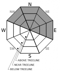 Heightened avalanche conditions on specific terrain features. Evaluate snow and terrain carefully; identify features of concern.