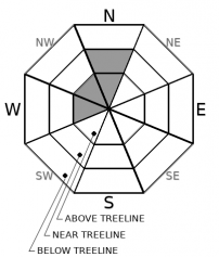 Heightened avalanche conditions on specific terrain features. Evaluate snow and terrain carefully; identify features of concern.
